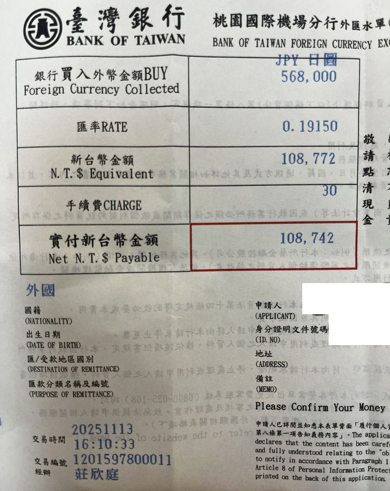 あまりに酷い円安のため換金レートが悪く、武漢コロナ前でしたら19万台湾ドルになったのが悔やまれます。(´;ω;`)ウゥゥ